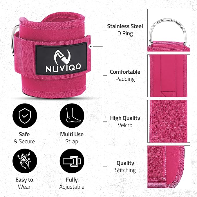 - VERSATILE ANKLE STRAPS - Our ankle cable attachments for gym feature rust-free stainless steel Double D-Rings which provides a reliable fastening system for safety. The adjustable strap ensures a secure fit for any ankle size, providing maximum comfort during exercises such as glute kickbacks and leg curls.