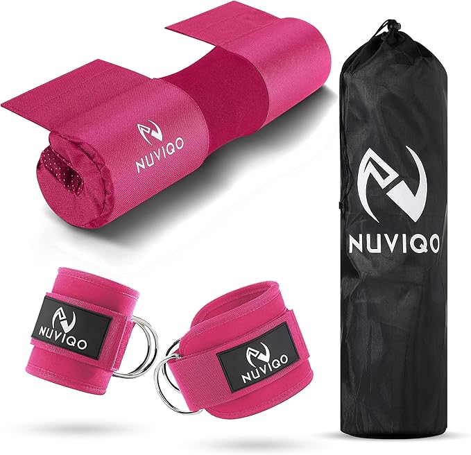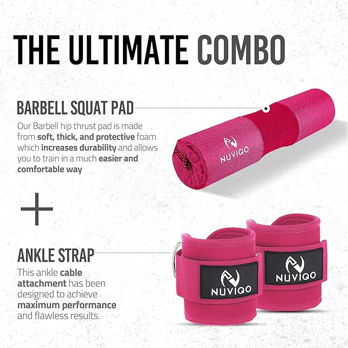 - ELEVATE YOUR WORKOUT - Ready to take your weightlifting and strength training to the next level? Look no further than NUVIQO’s bar padding for hip thrusts and ankle straps set! Made to meet the highest standards of quality, our set is the optimal choice for dedicated fitness enthusiasts who demand the best.
