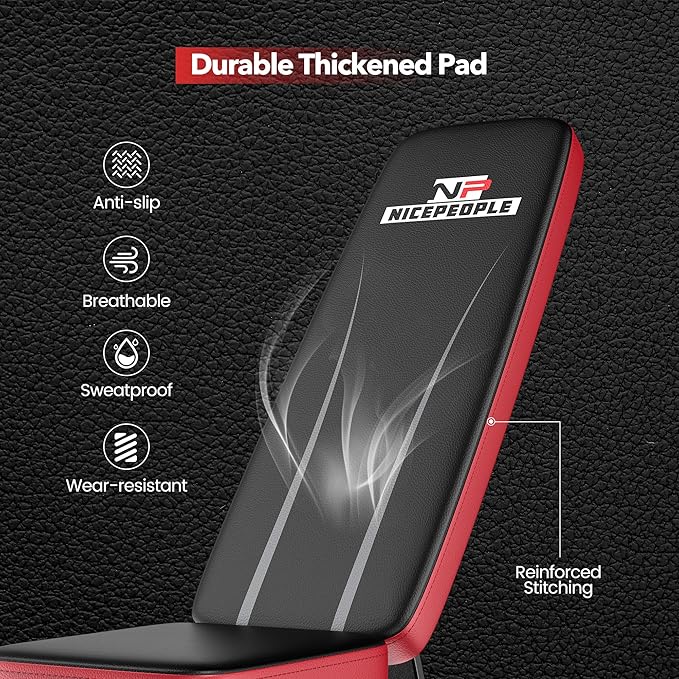 • Great Choice for Home Gym: NICEPEOPLE Basic weight bench is an ideal pick for beginners with complete features; Easy to assemble and is compact to transform every corner into your home gym; Contact us to get an extra training guide and start bench workout