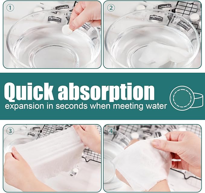 - WIDELY USED - Our towl tablets are suitable to wipe eyeglasses, dinning table, car, wound dressing, make-up removing and more. Hygienic and safe, perfect for multiple occasions like kitchen, hotel, salon, bathroom, office, hiking, camping, traveling, etc.