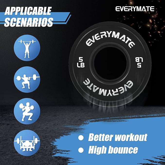 - QUALITY ASSURANCE: EVERYMATE lightweight bumper change plates are suitable for all exercise buyers. If you may find that our products are defective, please do not hesitate to contact us, and we promise you a satisfactory answer