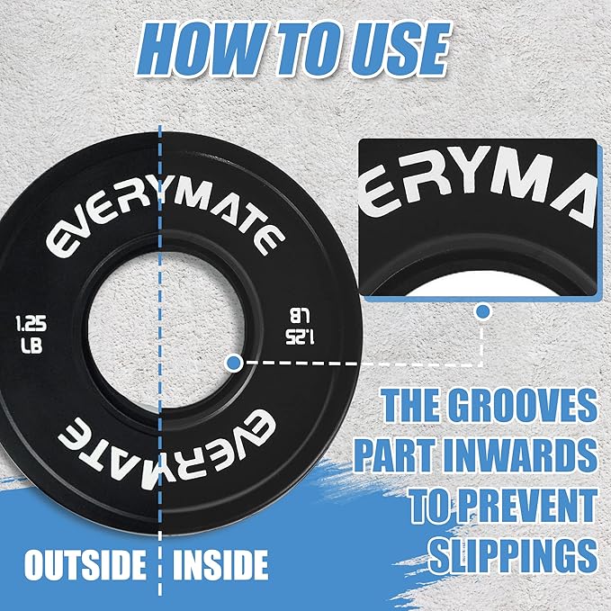 • RUBBER COATED CHANGE PLATES: EVERYMATE change plates are made of steel core which can add stability to bumper weight plates. We select high-quality rubber as a coating to create stronger and more durable change plates. Bumper change plates are easier to handle than traditional iron plates. The high-quality rubber of change plates prevents your floor from scratching. Corrosion-resistant, no peculiar smell. Don't worry about the smell of rubber in the fitness area at home