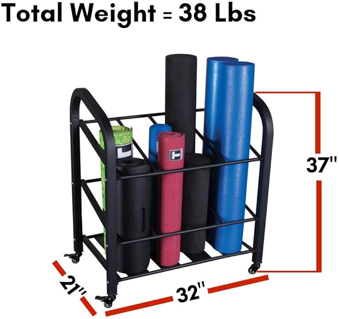 - EASY ASSEMBLY: The Body-Solid Foam Roller Yoga Mat Rack is not only a space-saving storage option but also incredibly simple to set up. Measures 32"x21"x37" and weighs 38lbs.