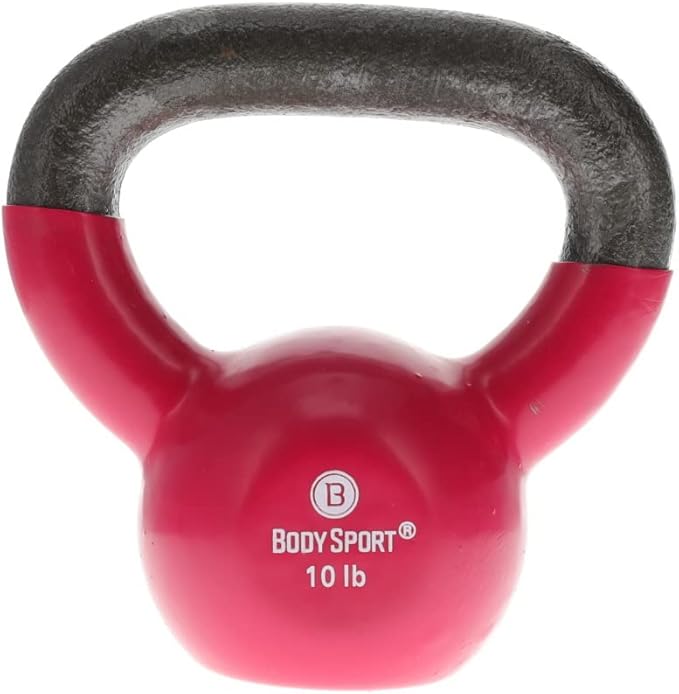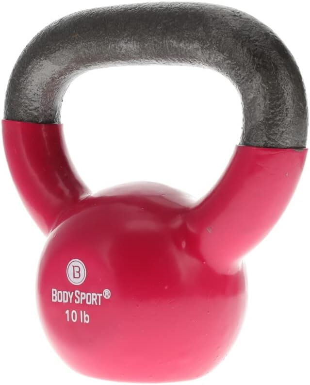 • DURABLE. The Body Sport Cast Iron Vinyl Coated Kettlebell features a cast iron handle and a colorful vinyl coating for enhanced durability, adding to the longevity of the product.