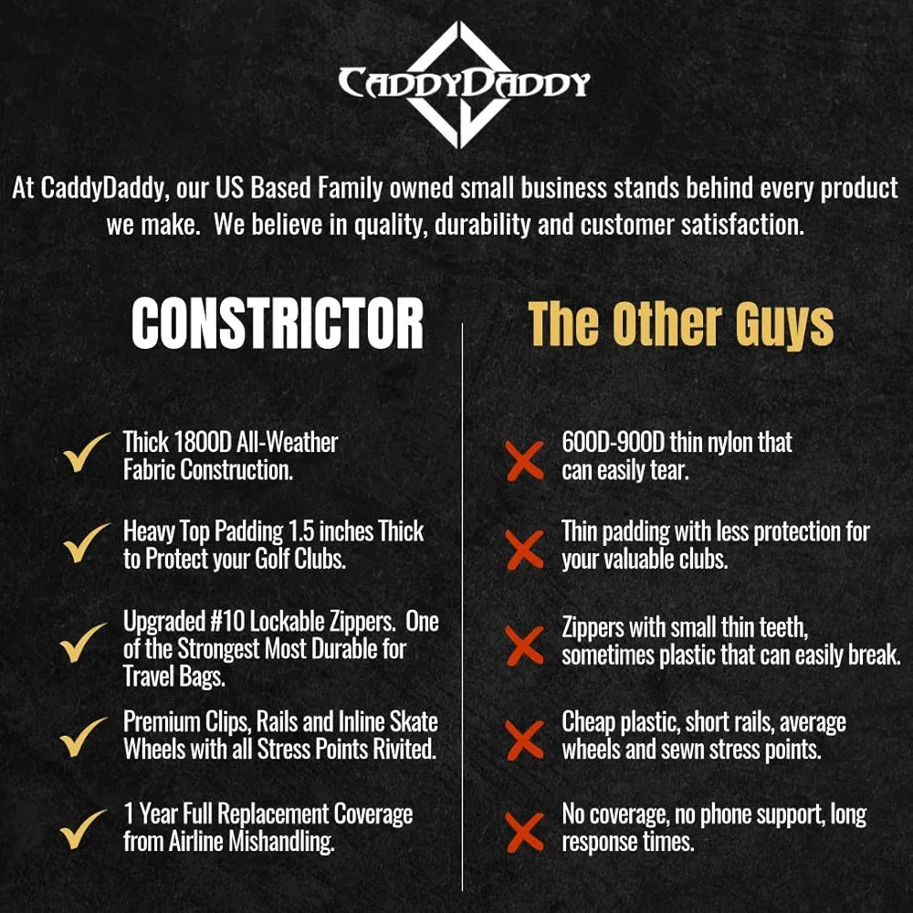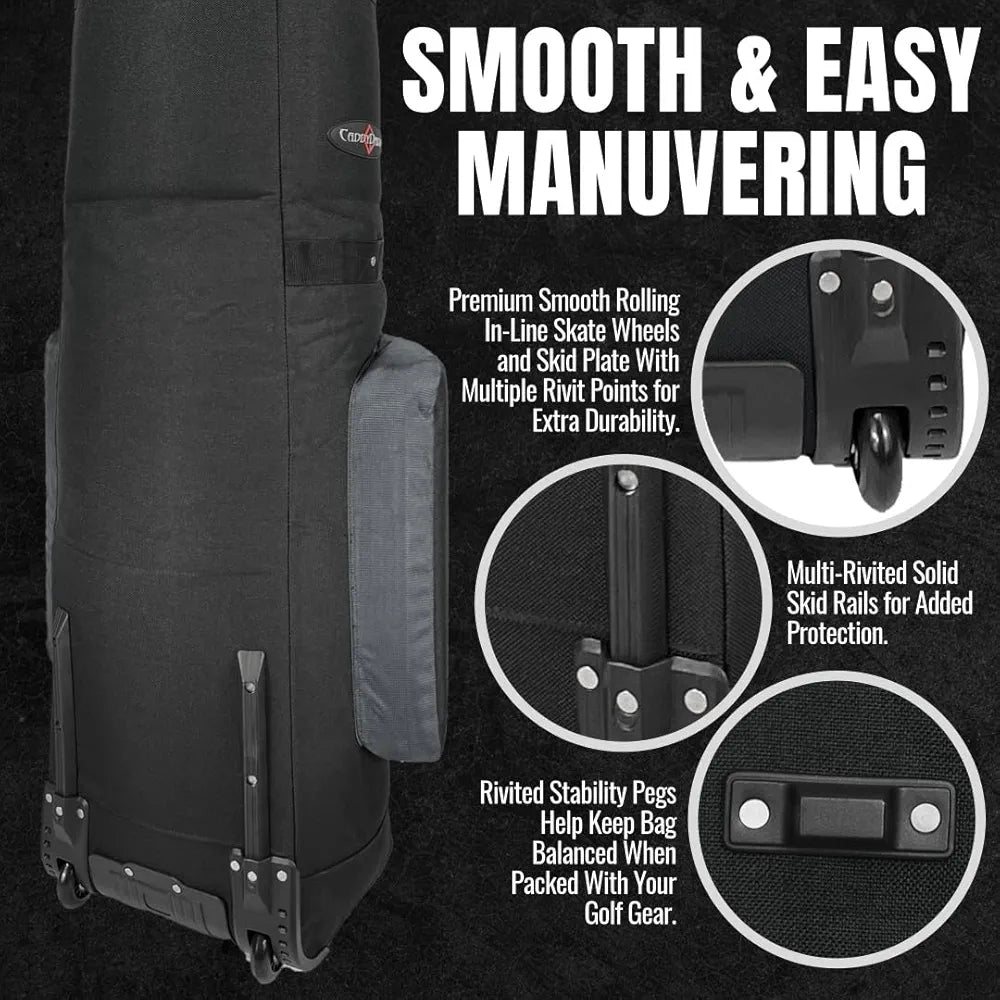 CaddyDaddy Constrictor Soft-Sided Golf Travel Bag Cover with Thick Dense Foam Padded Top 1 Year Full Travel Bag Replacement Coverage | Wheels & Lockable Zippers Case for Transporting Clubs on Airlines