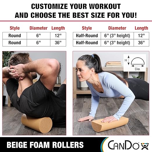 - MULTIPLE OPTIONS - Our foam rollers are available in a 6" diameter, round or half-round shapes, and lengths of 12" and 36". These rollers feature an attractive beige finish.