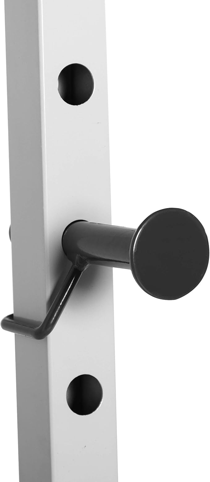 - FEATURES - Gusseted uprights provide exceptional stability and security. Catches and safety bars for added reliability. Pull up bar to strengthen arms and core.