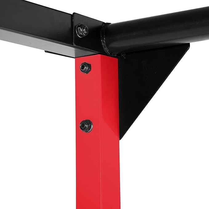 • FEATURES - Gusseted uprights provide exceptional stability and security; adjustable bar catches allow for a variety of exercises to be performed; pull-up bar to strengthen upper body.