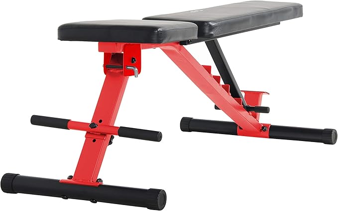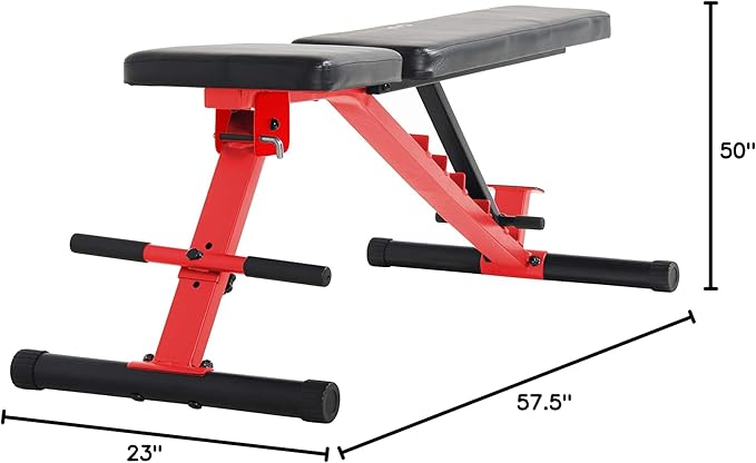 - RELIABLE - Durable red powder coat finish and zinc hardware provide exceptional maintenance-free durability. The end caps on the front and rear stabilizers prevent the bench from scratching the floor