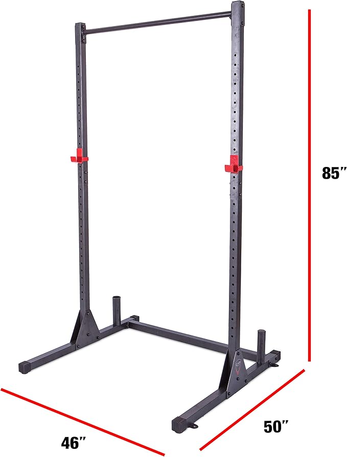 - MULTIPLE FEATURES - (1) Built-in bar and (1) weight storage. Double gusseted uprights provide exceptional stability and security. J-cup catches to safely hold barbell