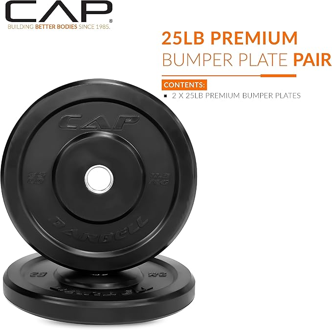 - WHAT’S INCLUDED – TWO 25-pound Better bumper weight plates in black; Designed to accommodate Olympic barbells (with 2-inch center hole)