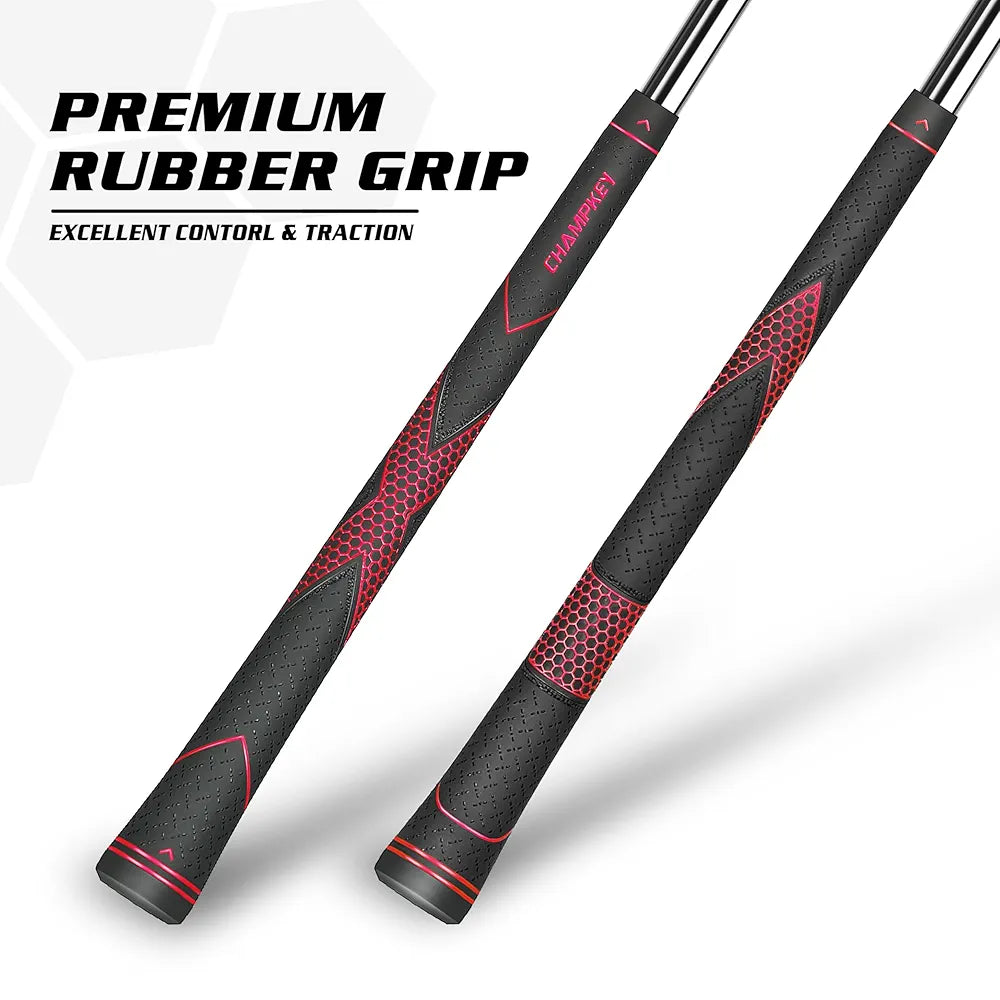 CHAMPKEY Premium Rubber Golf Grips 13 Pack | High Traction and Feedback Rubber Golf Club Grips | Choose Between 13 Grips with 15 Tapse and 13 Grips with All Kits, Midsize