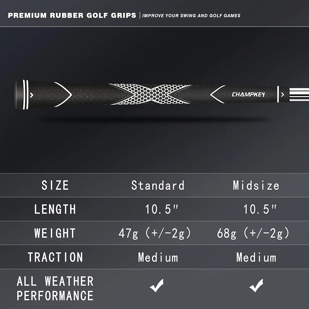 CHAMPKEY Premium Rubber Golf Grips 13 Pack | High Traction and Feedback Rubber Golf Club Grips | Choose Between 13 Grips with 15 Tapse and 13 Grips with All Kits, Midsize