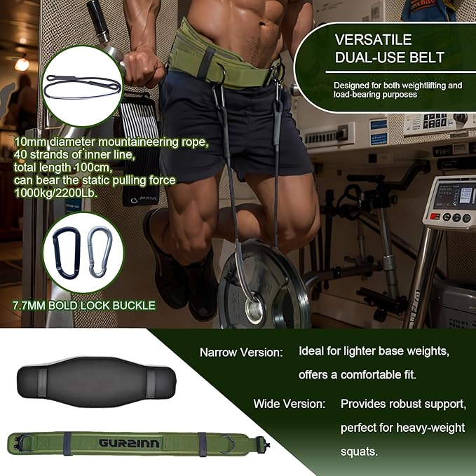 - 【2-in-1 Multi-Functional Fitness Belt】 Our fitness belt is both a weightlifting belt and a dip belt, one fitness belt can fulfill all your needs. After removing the hiking rope(Long 100cm,Diameter 4cm), it becomes a weight lifting belt, providing strong support and perfect protection for your back. With the chain on, it becomes a dip belt, which can perfectly fulfill all the functions that a dip belt can provide. Think about the superior weighing performance of our chains than ropes!