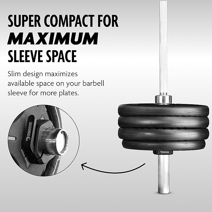 - 𝐒𝐔𝐏𝐄𝐑 𝐂𝐎𝐌𝐏𝐀𝐂𝐓 𝐃𝐄𝐒𝐈𝐆𝐍 𝐅𝐎𝐑 𝐌𝐀𝐗𝐈𝐌𝐔𝐌 𝐒𝐋𝐄𝐄𝐕𝐄 𝐒𝐏𝐀𝐂𝐄: Optimize your lifting space with our super compact Olympic Bar Clips. Designed to minimize bulk, this Barbell Clip allows you to maximize the sleeve space on your barbell, making it a perfect addition to any weightlifting setup. Focus on your lifts without compromising on space or efficiency, and make the most of your gym equipment with our sleek, compact design.