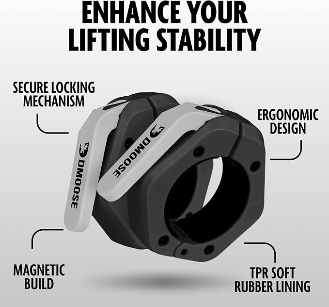- 𝐏𝐑𝐄𝐕𝐄𝐍𝐓 𝐏𝐋𝐀𝐓𝐄 𝐒𝐋𝐈𝐏𝐏𝐀𝐆𝐄 𝐅𝐎𝐑 𝐒𝐓𝐀𝐁𝐋𝐄 𝐖𝐎𝐑𝐊𝐎𝐔𝐓𝐒: Ensure your plates stay securely in place during every lift with DMoose Weight Bar Clamps. Designed for serious weightlifters, these magnetic bar clips provide unmatched stability, allowing you to focus on perfecting your form and maximizing your performance. No more worrying about shifting weights; lift with confidence and achieve your fitness goals with unparalleled stability and support.