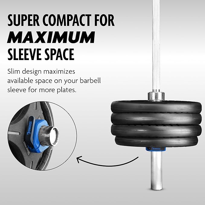 - 𝐒𝐔𝐏𝐄𝐑 𝐂𝐎𝐌𝐏𝐀𝐂𝐓 𝐃𝐄𝐒𝐈𝐆𝐍 𝐅𝐎𝐑 𝐌𝐀𝐗𝐈𝐌𝐔𝐌 𝐒𝐋𝐄𝐄𝐕𝐄 𝐒𝐏𝐀𝐂𝐄: Optimize your lifting space with our super compact Olympic Bar Clips. Designed to minimize bulk, this Barbell Clip allows you to maximize the sleeve space on your barbell, making it a perfect addition to any weightlifting setup. Focus on your lifts without compromising on space or efficiency, and make the most of your gym equipment with our sleek, compact design.