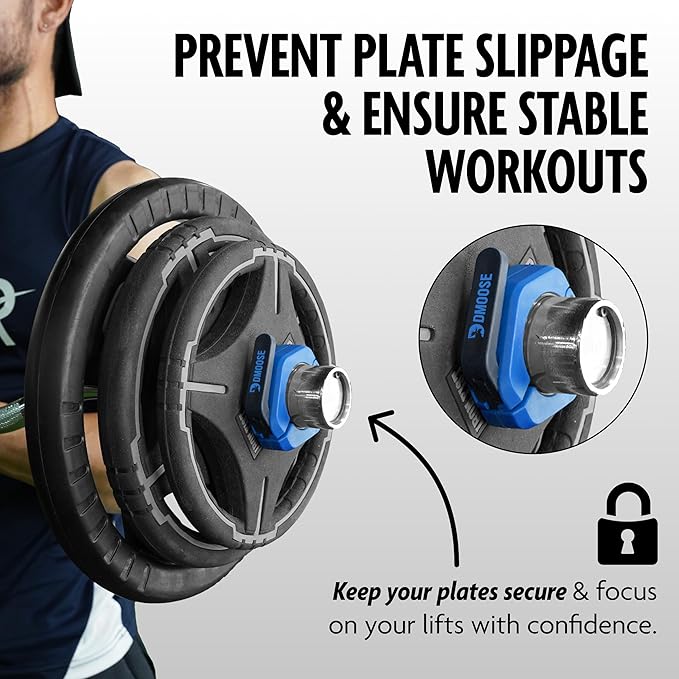 - 𝐏𝐑𝐄𝐕𝐄𝐍𝐓 𝐏𝐋𝐀𝐓𝐄 𝐒𝐋𝐈𝐏𝐏𝐀𝐆𝐄 𝐅𝐎𝐑 𝐒𝐓𝐀𝐁𝐋𝐄 𝐖𝐎𝐑𝐊𝐎𝐔𝐓𝐒: Ensure your plates stay securely in place during every lift with DMoose Weight Bar Clamps. Designed for serious weightlifters, these magnetic bar clips provide unmatched stability, allowing you to focus on perfecting your form and maximizing your performance. No more worrying about shifting weights; lift with confidence and achieve your fitness goals with unparalleled stability and support.