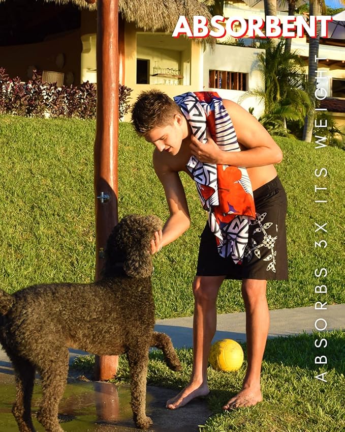 - QUICK DRY CONVENIENCE - Say goodbye to funky damp odors because this towel is famous for drying fast. Engineered to be highly absorbent while also drying 3x faster than regular swim towels. This no sand beach towel is great for swimming, surfing, kayaking, paddle boarding, camping, yoga.