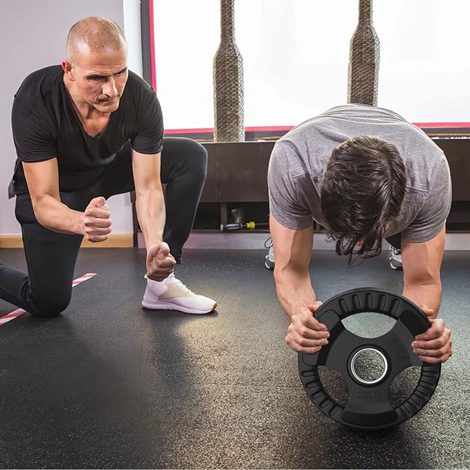 - 🏋DESIGN: Our bumper weight plates are designed with 3-hole grip which allows you for easy and safe handling while loading and unloading weights and reducing chance of injury. It also easier for you to train with a single weight plate.