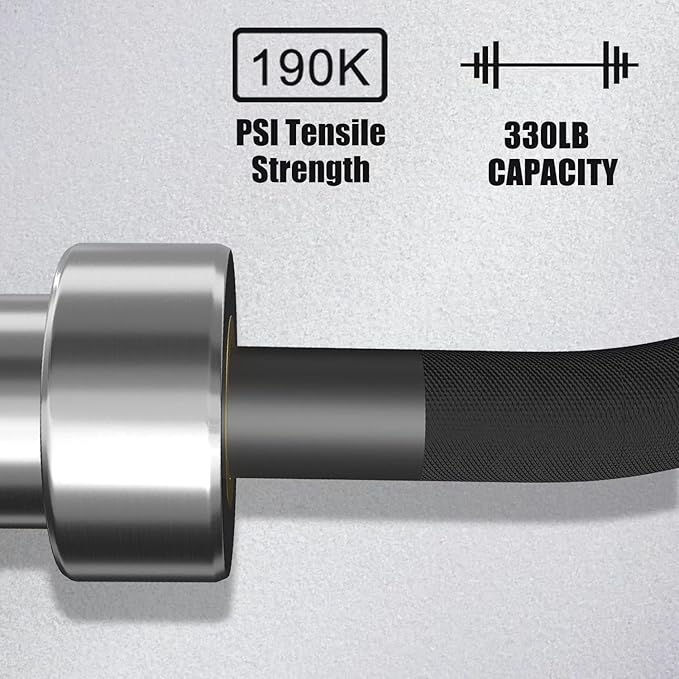 - 【SUPERIOR SPECS】Our olympic weightlifting bar is 4 foot (47 inches) long, a solid 22 lbs, 28 mm diameter. Rated 330 lbs for weight capacity. You can depend on it for all your workouts.