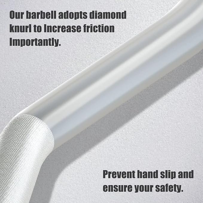 • 【KNURLED HANDLES】This Olympic barbell adopts diamond knurl for improving grip. These knurls with a 1.2mm medium-level knurling, increase friction, And it can increase the safety and ensure comfort when you exercises.