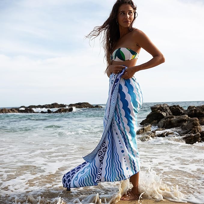- 😎PICK YOUR SIZE – Choose the size that fits your needs. The extra-large towel, 78x35" is perfect for lounging. The large towel, 63x31" is great for drying off. For a beach day with friends or kids, bring our family size compact beach towel, 72x72"