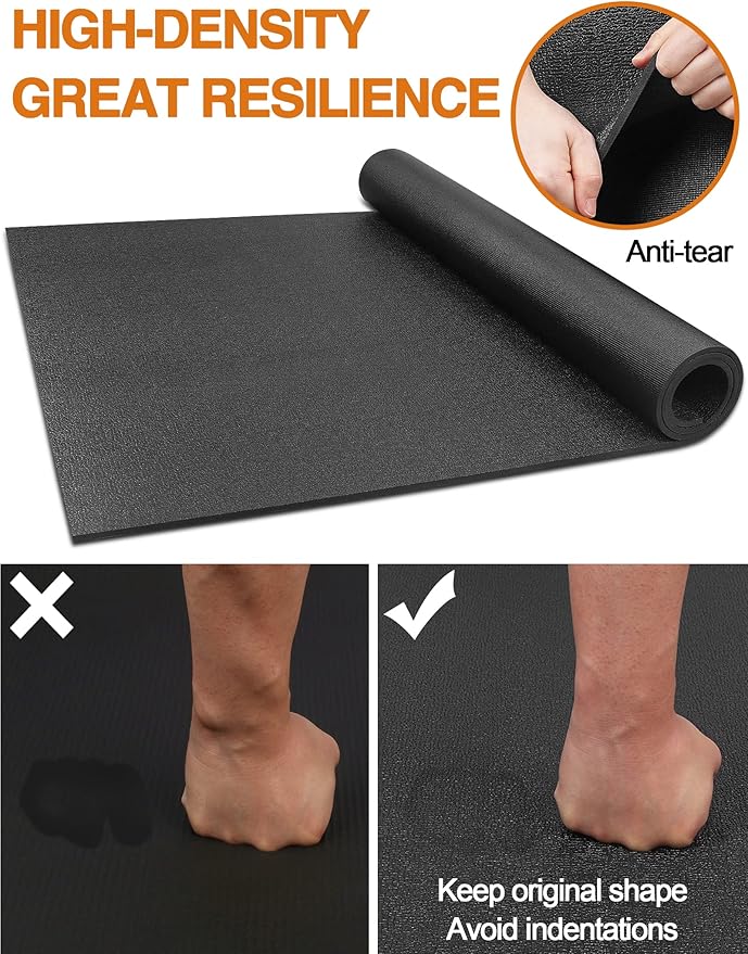 • Ideal for Home Workout Equipment, 1 Year Quality Assurance: Size 30" x 60", thickened 0.24" workout mat for home gym equipment is perfect for a stationary bike, indoor cycling bike, spin bike, small size treadmill, or other home workout equipment. Perfect size helps you maximize in allocating your available space and saving space. Plus, we promise that our exercise equipment mat has a one-year quality assurance against any manufacturing defects in materials and workmanship.