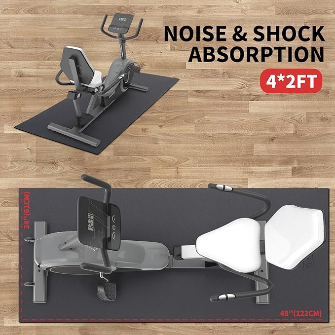 - All-Purpose Mat for Your Needs: Versatile mat for under exercise equipment and workouts; act as a treadmill mat for hardwood floors, elliptical mat, rowing machine mat, exercise bike mat, or mats for exercise equipment like weight benches; your ideal workout mats for home gym like jump rope, boxing, HIIT, Cardio; suitable for low-intensity exercise like yoga, stretching