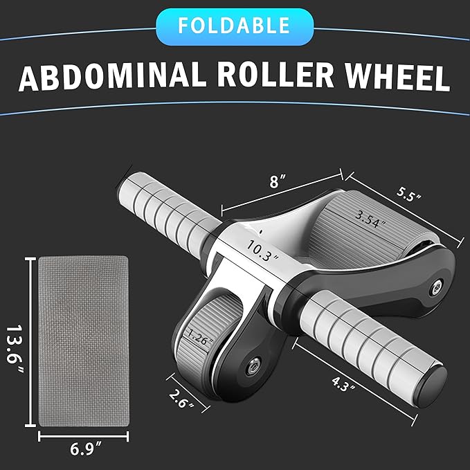 • 【REMOVABLE AND FOLDABLE COMPACT DESIGN】Our ab roller handles are easily removed, just screwing in or out. And the front wheels can be folded for compactness and portability (the folded size is about 8×5.5 inches), so you can exercise at home, office, and travel, providing long-lasting support for your fitness program.