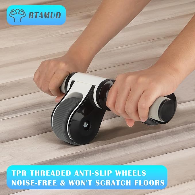 • 【HIGH QUALITY Abs Roller Wheel】BTAMUD abdominal exercise wheel made of high quality ABS materials with triangular design, providing excellent balance, strong stability and support during doing abdominal exercise. Equipped with 2 wrapping soft TPR rubber material wheel and a knee pad, it is anti-slip and noise-free during abs exercise at home and office floor, and will not hurt and scratch the floor. Meanwhile it is easier to control than other common core strength training wheels.