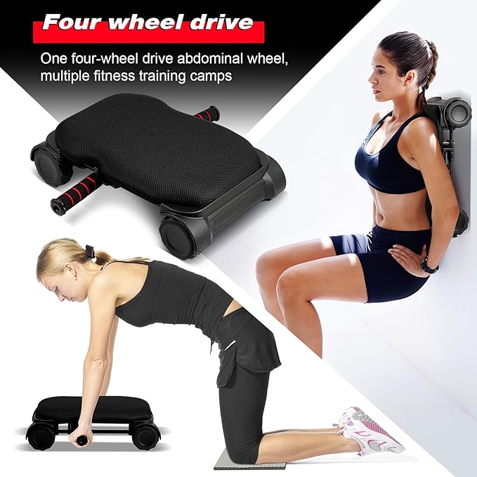 - More Convenient and less worrying: The four-wheel ab wheel provides additional support and stability compared to the regular ab wheel. This abs wheel comes with knee pads for a comfortable workout experience and intimate protection. Just enjoy the freedom of a more exciting and challenging exercise routine without the use of resistance bands!