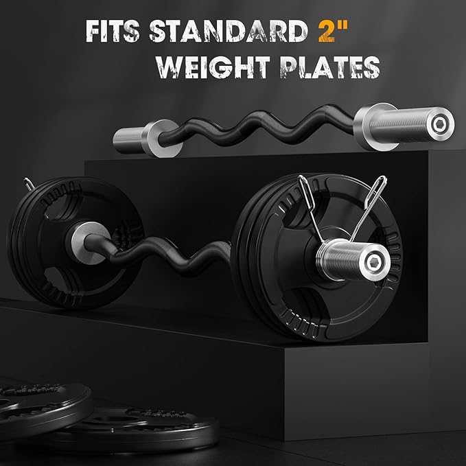- 【Enhanced Safety】Our curl barbell is user friendly. The right grip angle and rotatable bearings at the sleeve can put you in a very comfortable position.