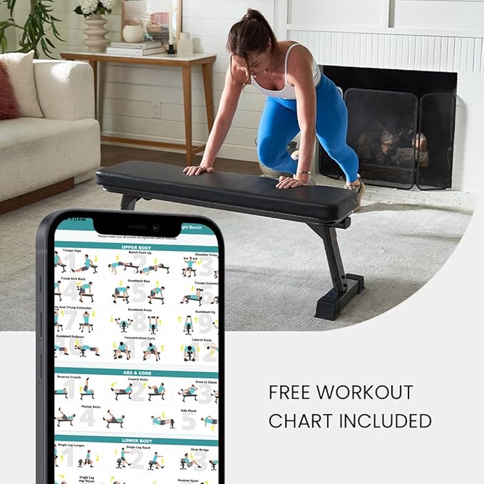 • Exercise Bench Convenient for Small Spaces - foldable flat bench easily and stores quickly under beds or in closets. The flat weight bench that's perfect for smaller apartments, offices or home gyms.