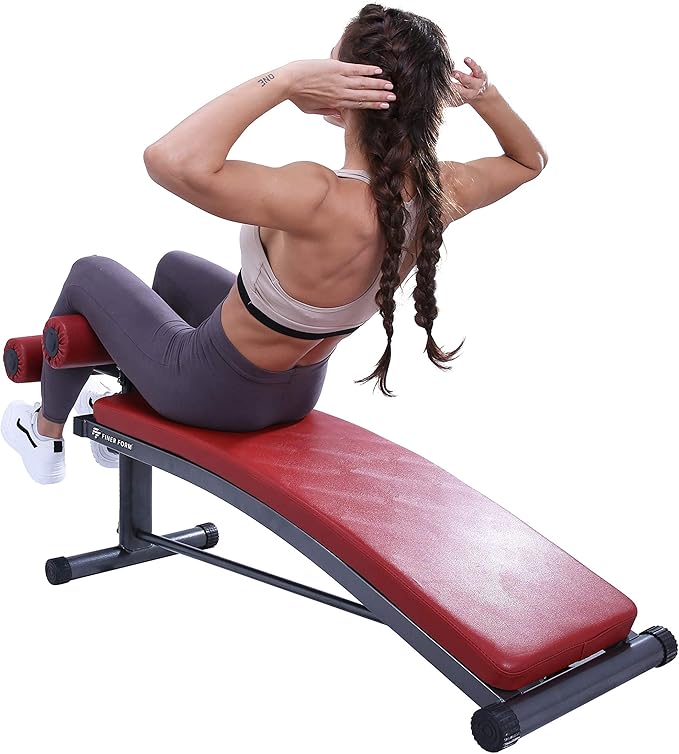 • REVERSE CRUNCH HANDLE – Reverse crunch bench develops your lower abdominals and obliques. This curved Finer Form sit up board will become a key part of your core routine. Become an ab crunch master.