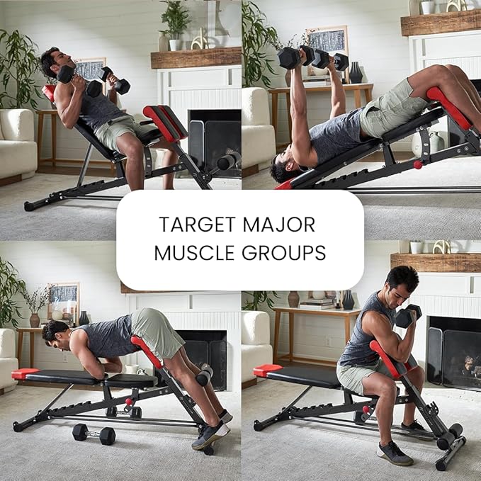 - Adjustable Multi-Purpose Weight Bench - Works as a flat, incline or decline bench for dumbbell sets. Target your glutes, legs & core. Adjust for upper body work. Versatile at-home exercise bench.