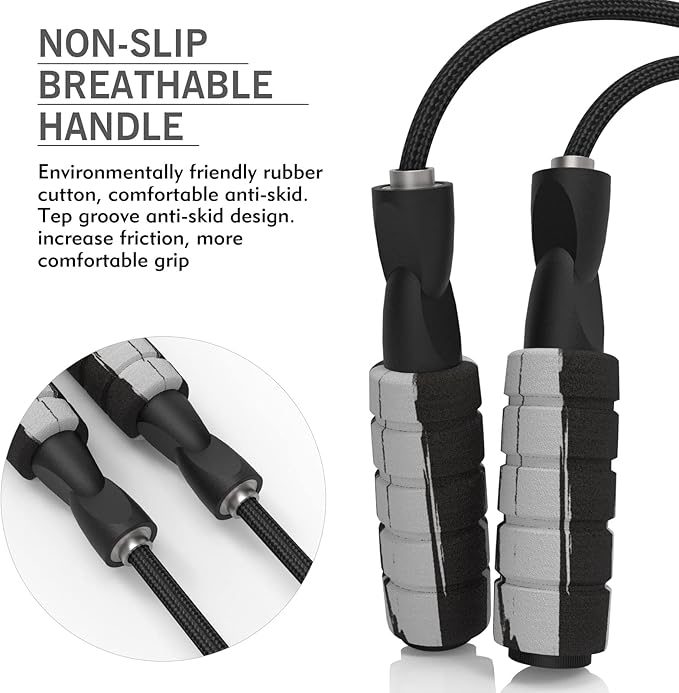 - Foam Handle: Comfortable handle makes it easy to grasp and carry, which makes your hands feel comfortable and non-slip during skipping,instantly motivates your excersize goals