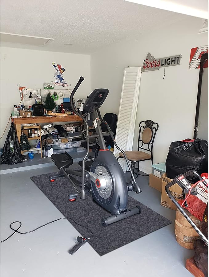 - Non-slip and waterproof backing——Place the mat under the elliptical machine or treadmill to prevent it from moving. It can also provide good cushioning for the floor, thereby protecting the floor from damage.