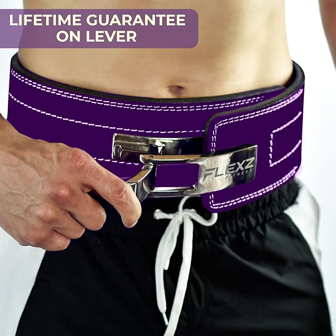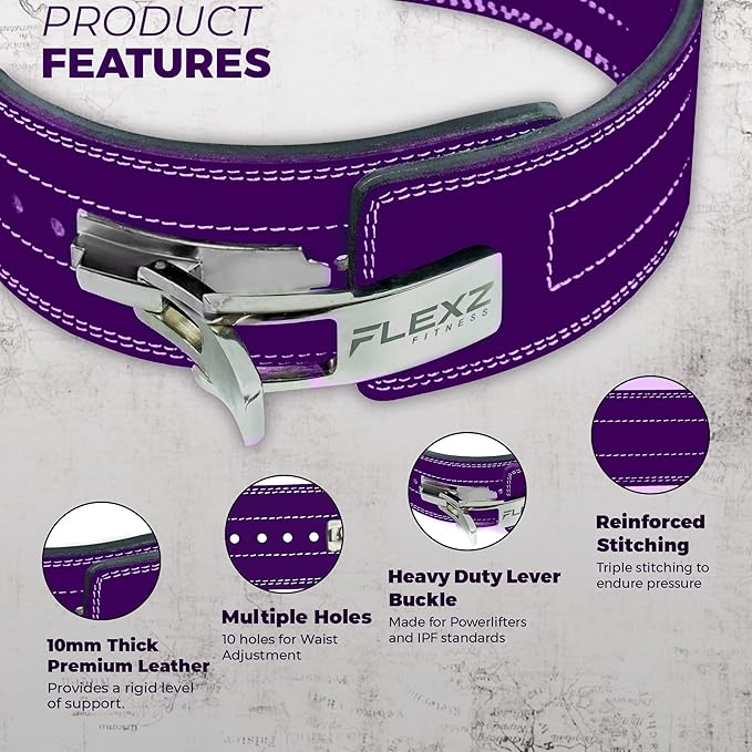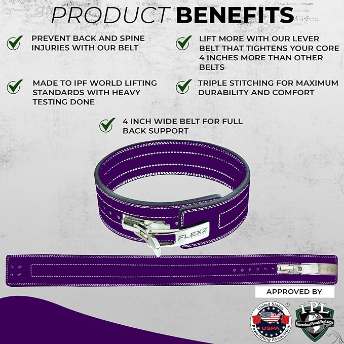 - NEW IMPROVED STEEL LEVER BUCKLE: The steel buckle of the weight lifting belt is indestructible in even the heaviest use. Its quick release makes it easy to loosen or tighten your belt within seconds! Our powerlifting belt allows lifters to wear a belt up to 4 inches tighter than the traditional weightlifting belts by increasing the intra-abdominal pressure with the lever buckle.