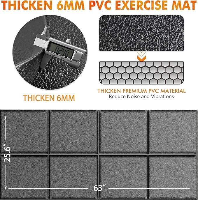 - ๐๐ข๐ ๐ก ๐๐๐ง๐ฌ๐ข๐ญ๐ฒ ๐๐ง๐ ๐๐ฎ๐ซ๐๐๐ฅ๐: Crafted from high-density PVC material, this exercise mat offers unmatched durability and cushioning, capable of withstanding heavy fitness equipment. It fully protects floors and carpets while extending the lifespan of your fitness gear.