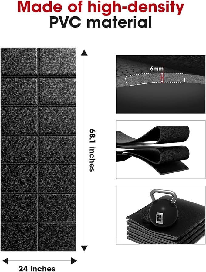 - 【Foldable Treadmill Mat】Our exercise equipment mat is Foldable. Unfolding to dimensions of 68" x 24" x 0.24" and folding down to 15.75" x 12.8" x 2".It is very helpful for some that need space-saving and keep your home tidy and you can move the equipment mat around easily thus you can train anywhere you like.