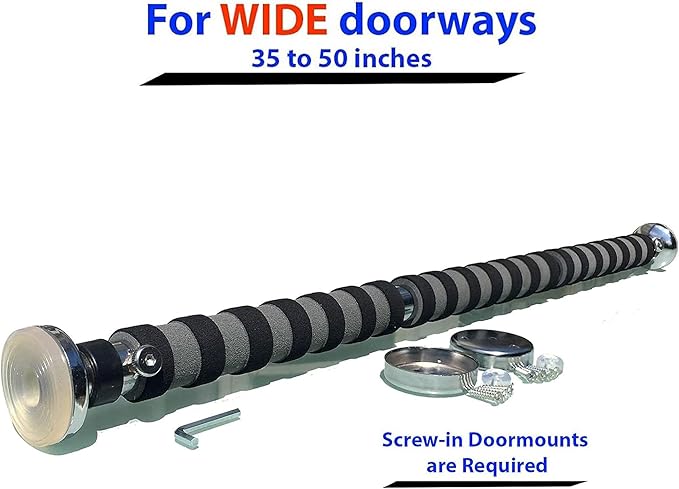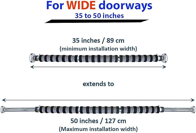- Use for Wide Doors (Over 35 Inches): The pull ups bar is adjustable to fit Wide doorways between 35 and 50 inches