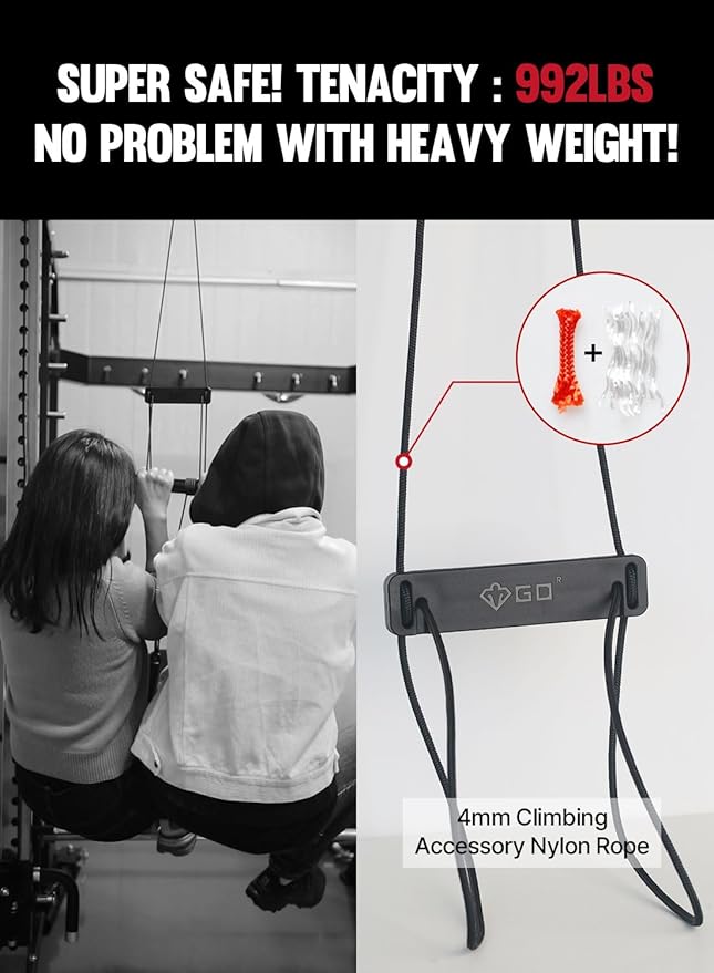 - [USING PARACORD NYLON (Made in USA)] It is durable and made with the finest material such as stainless bar handles & Nylon Paracord (The highest tensile strength : 550 lbs). However, we highly recommend you use under 60lbs barbell plates for your safety.