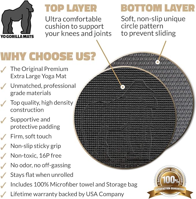- PREMIUM QUALITY YOU DESERVE – Don’t settle for anything less than the best. You can feel confident investing in your health knowing our mats are made with the highest quality standards and backed by world class support. Gorilla Mats are here to support you so relax and let your stress fade away!