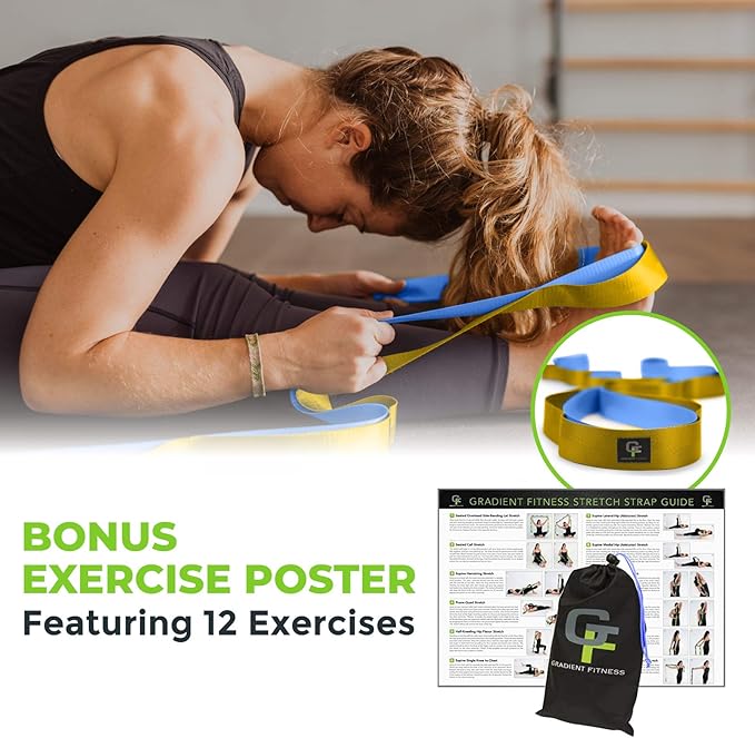 Gradient Fitness Stretching Strap for Physical Therapy 12 Multi-Loop 1.5" W 8' L,