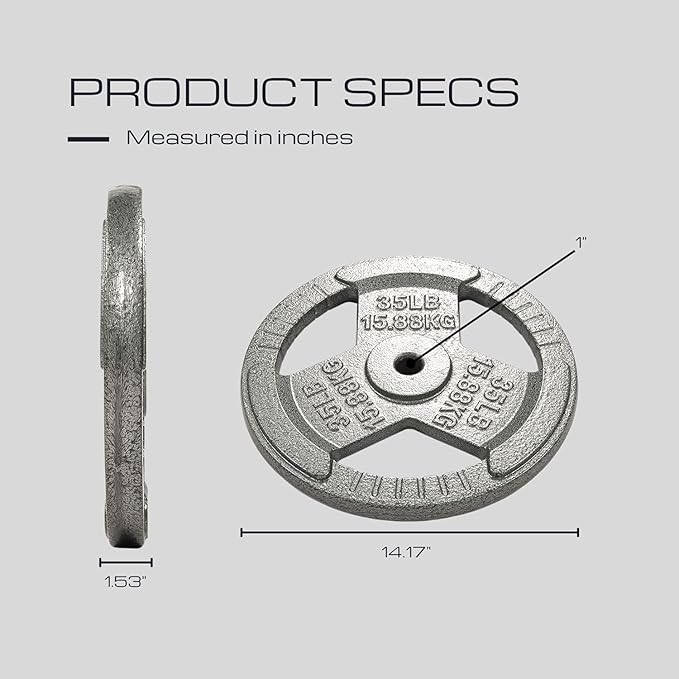 • Purpose - Increase overall health and fitness with our multi-grip 1 inch and 2 inch Cast Iron Weight Plates, which is a must have for any home or garage gym set up. Our Cast Iron strength training plates are coated with enamel to help prevent the potential of corrosion and rust.