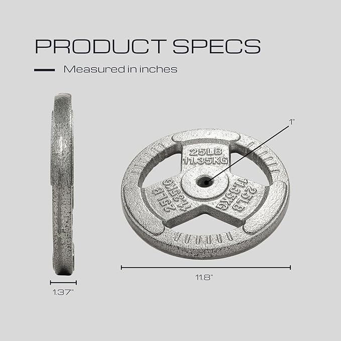 • Purpose - Increase overall health and fitness with our multi-grip 1 inch and 2 inch Cast Iron Weight Plates, which is a must have for any home or garage gym set up. Our Cast Iron strength training plates are coated with enamel to help prevent the potential of corrosion and rust.