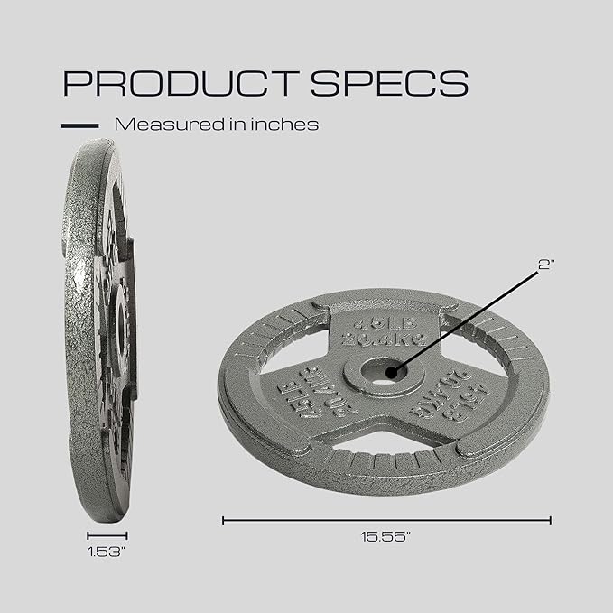 - Purpose - Increase overall health and fitness with our multi-grip 1 inch and 2 inch Cast Iron Weight Plates, which is a must have for any home or garage gym set up. Our Cast Iron strength training plates are coated with enamel to help prevent the potential of corrosion and rust.