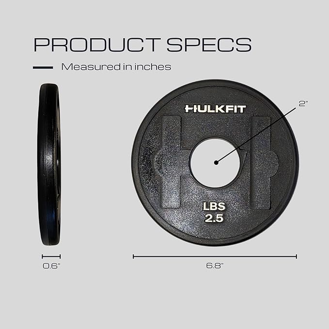 - Product Specifications - 2.5 lb plate 6.75” diameter x .6” thick. Compatible with Olympic style bars and barbells with a 2" opening.