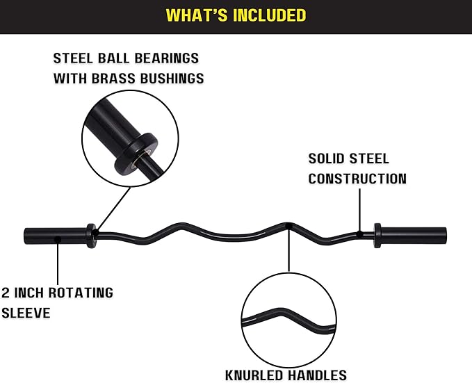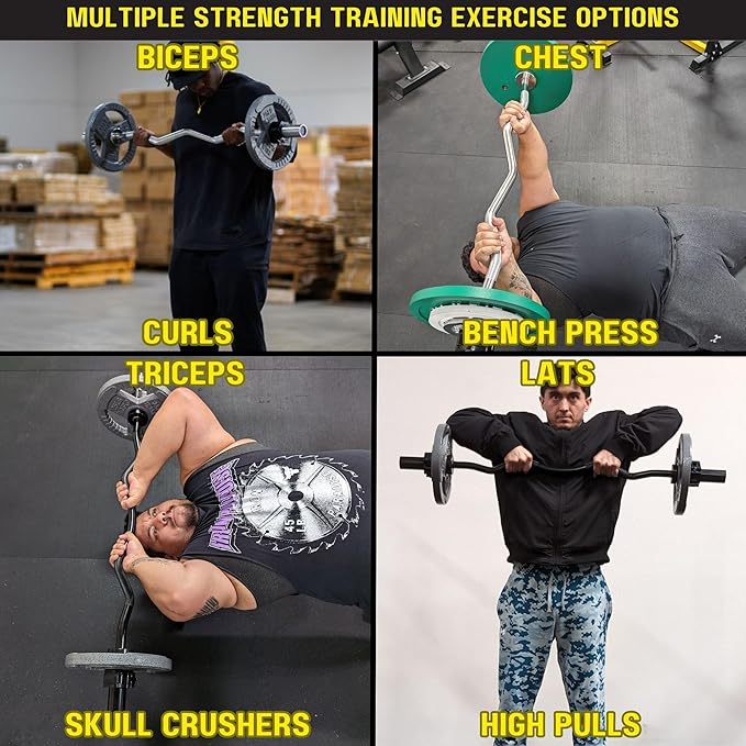 - Solid Steel Construction: Built with durable solid steel and a zinc-plated finish (available in black or chrome), this curl bar is built to withstand even your toughest workouts.